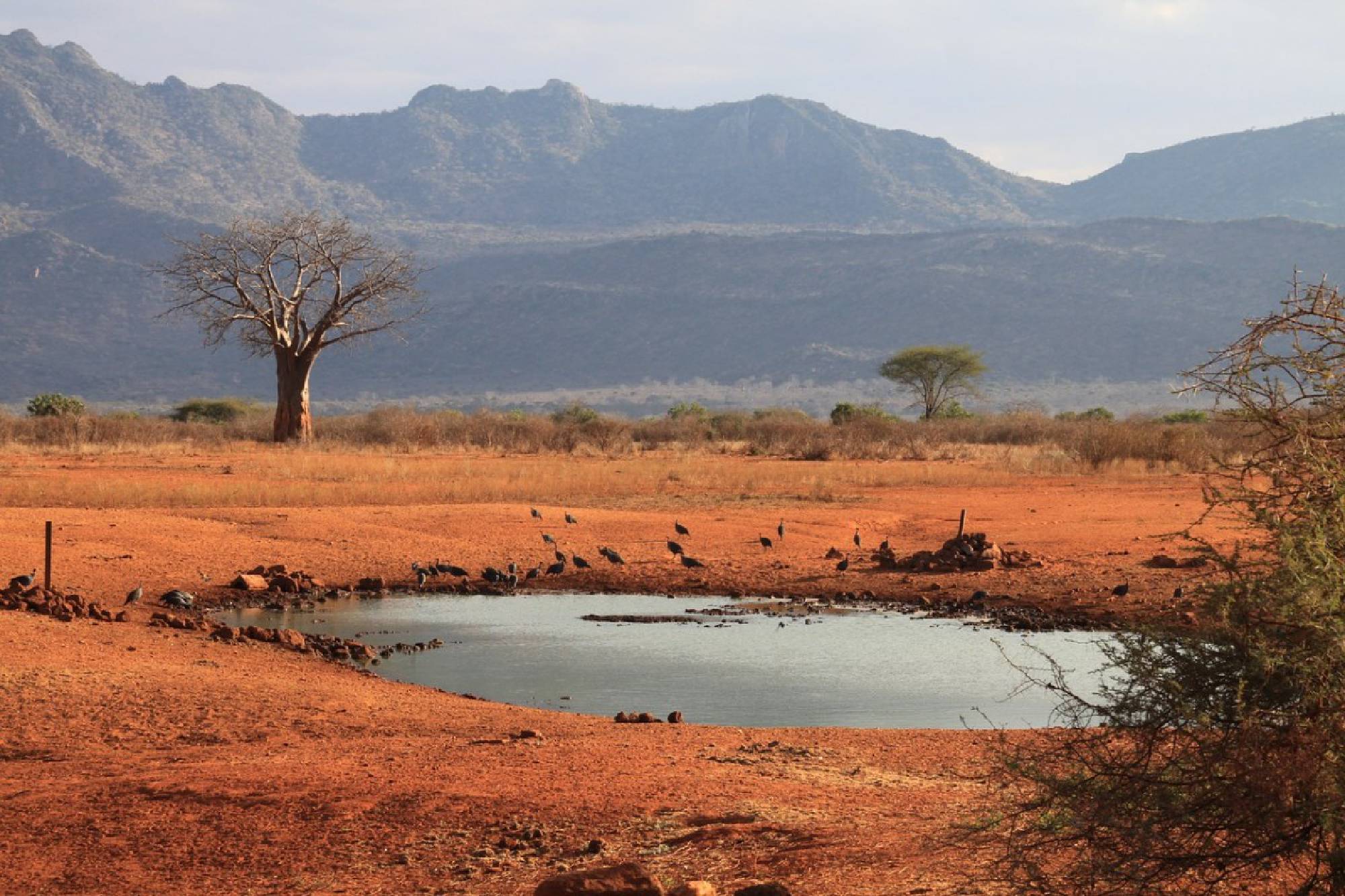 Nach dem Kaffee geht es dann los. Fahrt zum Tsavo Ost Nationalpark, den Sie bei Buchuma nach etwa 120 km, befahren werden. Ihre erste Pirschfahrt bringt Sie in die Sentrim Tsavo Lodge (ehemals Tarhi Camp), eine sehr schöne Lodge mitten im Tsavo Ost Park.